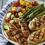 I slice the grilled chicken and serve it next to the vegetable medley, finishing with a sprinkle of fresh parsley if I have it on hand.