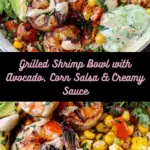Grilled Shrimp Bowl with Avocado, Corn Salsa & Creamy Sauce