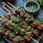 - Serve hot skewers drizzled generously with the chimichurri sauce.