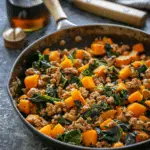 A wholesome and satisfying one-pan meal featuring lean ground turkey, sweet butternut squash, and vibrant rainbow chard. It’s packed with nutrients, warm spices, and perfect for a healthy 30-minute dinner.
