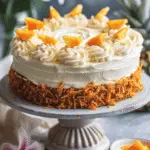 A moist, tropical twist on classic carrot cake featuring crushed pineapple, shredded coconut, and warm spices, optionally topped with a pineapple-infused cream cheese frosting.