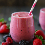 A creamy and refreshing mixed berry smoothie made with frozen berries, banana, plant milk, and nutrient-rich seeds. This quick dairy-free drink is naturally sweet, satisfying, and perfect for breakfast or a healthy snack.
