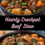 A comforting, hearty crockpot beef stew with tender beef, soft vegetables, and a rich, flavorful broth. Perfect for chilly nights or feeding a crowd with minimal effort.