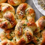 I store leftover knots in an airtight container at room temperature for up to 2 days, or in the fridge for up to 4 days. To reheat, I wrap them in foil and warm in a 350°F (175°C) oven for about 5–7 minutes. For a quick option, I use the microwave for 15–20 seconds, though the texture is better from the oven.
