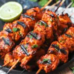 These Indian Tandoori Chicken Tikka Kebab Skewers feature juicy, tender chicken marinated in a spiced yogurt blend and cooked to smoky perfection using a grill, oven, air fryer, or BBQ. Perfect as a main, appetizer, or in wraps.