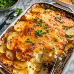 A creamy, cheesy loaded baked potato casserole made with tender russet potatoes, sour cream, butter, cheddar, and green onions. This comforting dish is perfect as a hearty side or satisfying main for family dinners and gatherings.