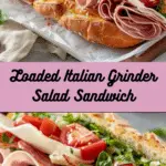 This Loaded Italian Grinder Salad Sandwich is stacked with layers of savory deli meats, melted provolone, and a creamy, zesty grinder salad. It delivers the perfect balance of warm, rich flavors and cool, crunchy texture in every bite.