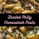 A hearty, one-pan twist on the iconic sandwich, Loaded Philly Cheesesteak Pasta is the kind of meal I turn to when I need something satisfying, cheesy, and completely comforting. This dish brings together thinly sliced steak, sautéed peppers and onions, and al dente pasta, all smothered in a luscious blend of provolone and mozzarella. It’s everything I love about a Philly cheesesteak, with a pasta-loving upgrade—ideal for a weeknight dinner that doesn’t hold back on flavor or comfort.
