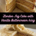 This London Fog Cake features soft Earl Grey–infused layers paired with a smooth vanilla buttercream icing. Delicately floral and perfectly sweet, it captures the cozy elegance of a classic tea latte in cake form.