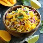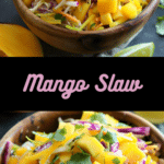 A bright and refreshing mango slaw with crunchy vegetables and a tangy lime dressing, perfect as a light side dish for any meal.