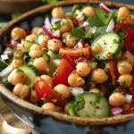 This Mediterranean Chickpea Salad is one of my favorite quick and refreshing meals. I love how it brings together crisp vegetables, creamy feta, and hearty chickpeas in a bright lemony dressing. I often prepare it when I want something wholesome, colorful, and satisfying without turning on the stove.