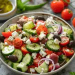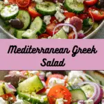 This Mediterranean Greek Salad is a fresh and colorful mix of crisp romaine, juicy tomatoes, cucumber, olives, and creamy feta tossed with a bright lemon and olive oil dressing. It’s a quick, vibrant dish perfect as a light meal or a flavorful side.