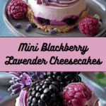 Delicately floral and subtly fruity, these Mini Blackberry Lavender Cheesecakes combine a buttery graham cracker crust, lavender-infused cheesecake filling, and a sweet-tart blackberry sauce. Perfectly portioned for entertaining or personal indulgence.