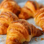 I store leftover croissants in an airtight container at room temperature for up to 2 days. If I want to keep them longer, I freeze them once they’ve cooled completely. To reheat, I warm them in a 325°F (160°C) oven for 5–8 minutes to restore their crispness — it brings the butteriness back to life.