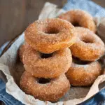 Once the donuts are cool, I brush each one lightly with melted butter or coconut oil and dip them into the cinnamon sugar mixture until fully coated.
