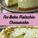 A silky, creamy no-bake pistachio cheesecake with a buttery graham cracker crust. This elegant dessert combines pistachio paste, ricotta, and whipped cream for a light yet rich treat, perfect for holidays or dinner parties—no oven required.