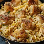 A cozy and quick one-pan chicken with buttered noodles recipe featuring tender chicken breasts, garlic butter, and cheesy egg noodles—all cooked in one skillet for easy cleanup and a satisfying meal.