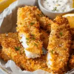 Crispy and tender oven-baked fish sticks made with flaky white fish, whole wheat breadcrumbs, and Parmesan cheese for a healthier take on a nostalgic classic. Perfect for quick dinners and kid-friendly meals.