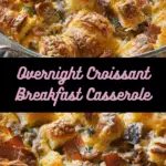 A rich and comforting start to the day, this Overnight Croissant Breakfast Casserole combines buttery croissants with creamy eggs and melty cheese. I prep it the night before so that in the morning, I can simply bake and serve. It’s the kind of dish that turns simple ingredients into something special—perfect for holiday mornings, brunch with friends, or a relaxed weekend breakfast.