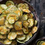 Crispy baked Parmesan zucchini chips with a golden, cheesy crust and tender center, perfect as a light snack or flavorful side dish.
