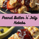 A fun, no-cook twist on the classic PB&J sandwich, these Peanut Butter ‘n’ Jelly Kebabs combine creamy peanut butter, fruity jam, and fresh fruit on skewers for a playful, portable snack ideal for kids and adults alike.