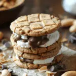 A fun twist on classic s’mores, these Peanut Butter S’mores Sandwich Cookies are chewy, gooey, and packed with irresistible flavor. I take soft peanut butter cookies and fill them with melty chocolate, marshmallow, and a crunchy graham cracker piece for that nostalgic campfire feel—all in a handheld treat. They’re ideal for parties, dessert tables, or satisfying a cozy craving at home.