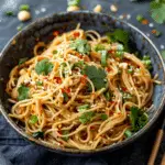 A colorful noodle salad tossed with crisp vegetables, fresh herbs, and a creamy peanut-sesame dressing. This quick dish delivers bold savory-sweet flavor and satisfying texture in every bite.