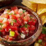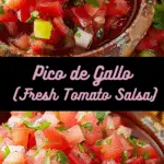 Pico de Gallo, also known as salsa fresca, is a vibrant, chunky Mexican salsa made with fresh tomatoes, onions, cilantro, chili peppers, lime juice, and salt. It’s a quick, healthy, and customizable topping or dip that enhances any savory dish.
