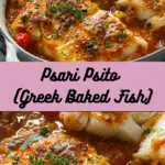 Psari Psito is a classic Greek baked fish dish featuring whole fish infused with lemon, olive oil, garlic, and fresh parsley for a light and aromatic Mediterranean flavor.