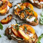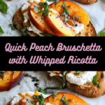 This Quick Peach Bruschetta with Whipped Ricotta is a vibrant summer appetizer featuring crispy toasted baguette slices topped with creamy ricotta, juicy peaches, fresh basil, and a drizzle of honey. It’s the perfect blend of sweet, savory, creamy, and crunchy flavors.