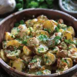This roasted potato salad combines crispy golden potatoes with cool cucumber, fresh herbs, crunchy pistachios, and a creamy tangy dressing. It is a vibrant twist on classic potato salad that works beautifully served warm or chilled.