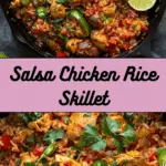A flavorful, one-pan dinner that brings together everything I love about comfort food—this Salsa Chicken Rice Skillet is savory, cheesy, and packed with hearty ingredients. With juicy chicken, tender rice, zesty salsa, and melty cheddar, it’s a dish I can whip up quickly on busy nights without sacrificing flavor or satisfaction.