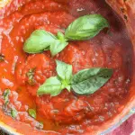A rich, velvety tomato sauce that starts with authentic San Marzano tomatoes and builds flavor through slow simmering with olive oil, garlic, and fresh basil. I love making this sauce from scratch — it’s simple, deeply flavorful, and pairs beautifully with pasta, pizza, or crusty bread for dipping.