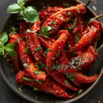 These silky, smoky roasted red peppers are bursting with bold Mediterranean flavor. After charring in the oven, I marinate them in olive oil, garlic, and a touch of vinegar to create a vibrant dish that’s perfect as a side, appetizer, or even a topping for crusty bread. They’re tender, colorful, and incredibly easy to make.