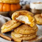 These soft pumpkin snickerdoodles are filled with a creamy cheesecake center and coated in cinnamon sugar, making them the perfect cozy treat for fall. With warm spices, tender pumpkin dough, and a luscious cheesecake surprise, they bring together the best of pumpkin pie and classic cookies.