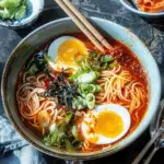 A bold and spicy Korean-inspired noodle soup made in just 10 minutes, packed with gochujang, garlic, vegetables, and chewy ramen noodles. Perfect for a quick and comforting meal.