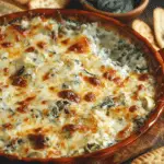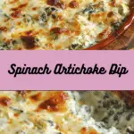 A warm, creamy spinach artichoke dip packed with tender spinach, chopped artichokes, and melted cheeses. This easy baked appetizer is rich, comforting, and perfect for sharing with chips, crackers, or toasted bread.