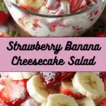 A creamy, no-bake dessert salad combining cheesecake flavors with fresh strawberries, bananas, and a light, fluffy texture. Perfect for warm-weather gatherings and quick treats.