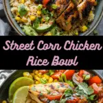 A vibrant and satisfying Street Corn Chicken Rice Bowl that combines seasoned grilled chicken, creamy Mexican-style street corn, and fluffy rice. Perfect for meal prep or a quick, flavorful dinner in under 30 minutes.