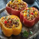 These stuffed bell peppers with ground beef and rice are a staple in my kitchen when I want something cozy, flavorful, and simple. They’re versatile, meal-prep friendly, and a great way to serve up protein and veggies in one dish. Whether I’m making them for a busy weeknight or as part of a weekend meal, they always hit the spot.