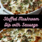 A warm, creamy dip that captures the rich flavors of stuffed mushrooms in an easy-to-make, shareable appetizer. Packed with Italian sausage, mushrooms, and cheese, it’s perfect for parties or cozy gatherings.