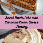 A moist, warmly spiced sweet potato cake layered with rich cinnamon cream cheese frosting. Perfect for fall gatherings or cozy weekends, this dessert features real sweet potatoes and a tender crumb with hints of cinnamon, nutmeg, and cloves.