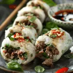 These Thai Basil Beef Rolls combine savory ground beef with fragrant Thai basil wrapped in tender rice paper for a fresh, vibrant meal. Served with sweet chili sauce, they are light yet satisfying and perfect for busy weeknights.