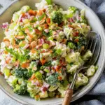 I love making this broccoli salad whenever I need something fresh, crunchy, and full of flavor. It is creamy, slightly sweet, a little tangy, and packed with texture in every bite. I find it perfect for family dinners, potlucks, meal prep, or even as a light lunch on its own.
