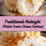 Kolaczki are traditional Polish cream cheese cookies made with a tender, buttery dough and filled with fruit preserves. These delicate pastries are perfect for holidays and special occasions, dusted with powdered sugar for a festive finish.