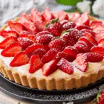 A buttery tart shell filled with silky vanilla custard and topped with fresh glazed strawberries. This elegant and refreshing dessert is perfect for spring and summer gatherings or special occasions.