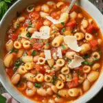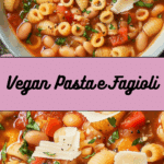 A hearty and wholesome Vegan Pasta e Fagioli made with creamy cannellini beans, vegetables, small pasta, and a tomato-herb broth. This one-pot, plant-based meal is cozy, satisfying, and perfect for chilly evenings.