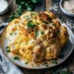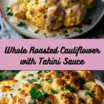 I love making this whole roasted cauliflower with tahini sauce when I want a dish that looks impressive without being complicated. The cauliflower turns beautifully golden and crisp on the outside while staying tender inside. I finish it with a creamy lemon-garlic tahini drizzle, fresh herbs, and crunchy pistachios for a flavorful vegetarian centerpiece that feels both elegant and comforting.